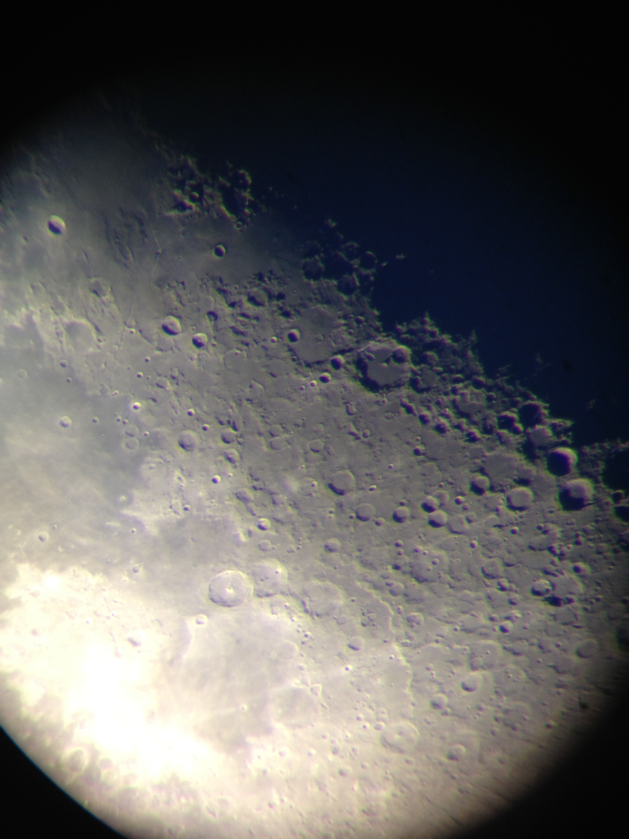 The picture on the right isn’t, as you might have assumed, a close-up of my face first thing in the morning before I’ve had time to apply the slap (although I can see the resemblance) it’s a picture of the surface of the moon, taken by my son from Greenwich Park. He was looking through the very large telescope in the Observatory at the time, but I’m still amazed by the fact that technology allows a 15 year-old schoolboy to take a photograph like this with his phone (or rather, it did, before he dropped it in the sink and it died on him; he is his mother’s son, after all). He’s now bereft, as until he gets a replacement the constant contact he usually maintains with his friends has been severed, and he has to wait as much as 17 1/2 hours before he can catch up with them again. Having grown up in a house without a phone of any description, my attitude to the constant stream of information that floods our lives is more ambivalent; there are times when I would definitely prefer not to be disturbed (my summer holiday was not in any way enhanced by the receipt of an email from my parents’ MP, for instance). The thought of wearing glasses that update you with news feeds makes me feel queasy.